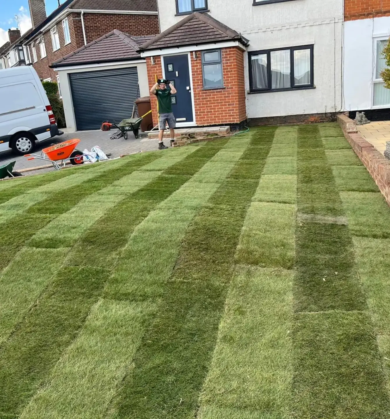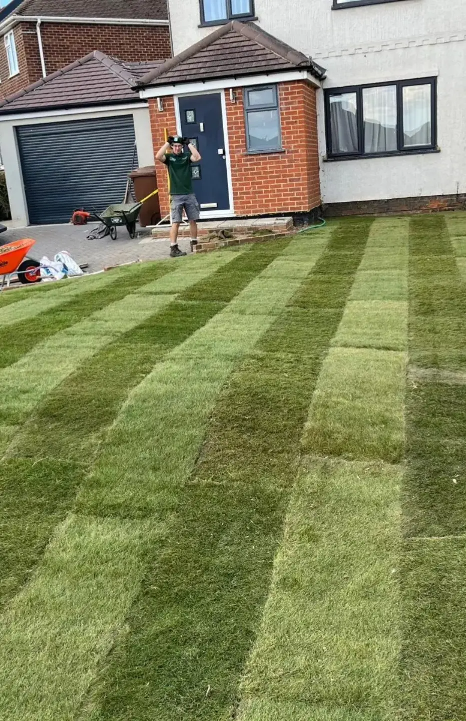 Turf laying: Fresh, high-grade turf was laid in a staggered pattern for seamless joins and immediate visual impact.