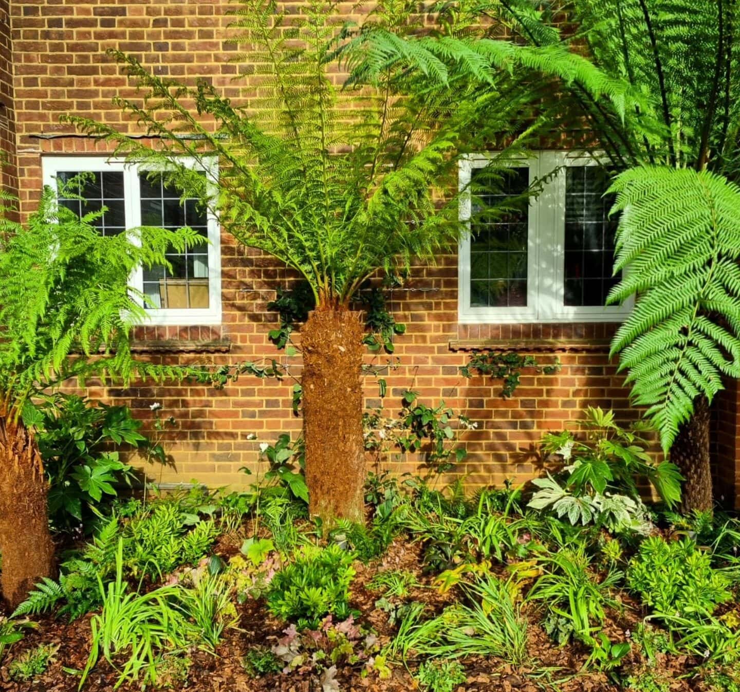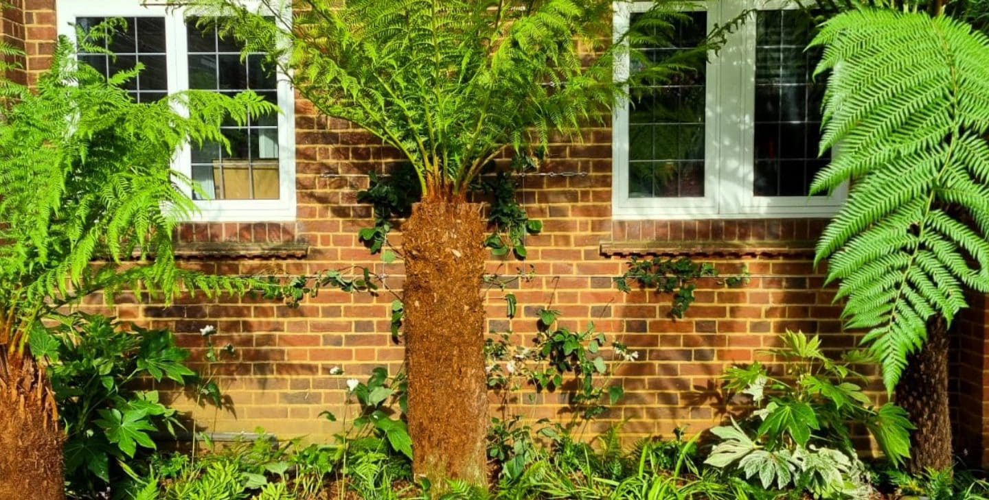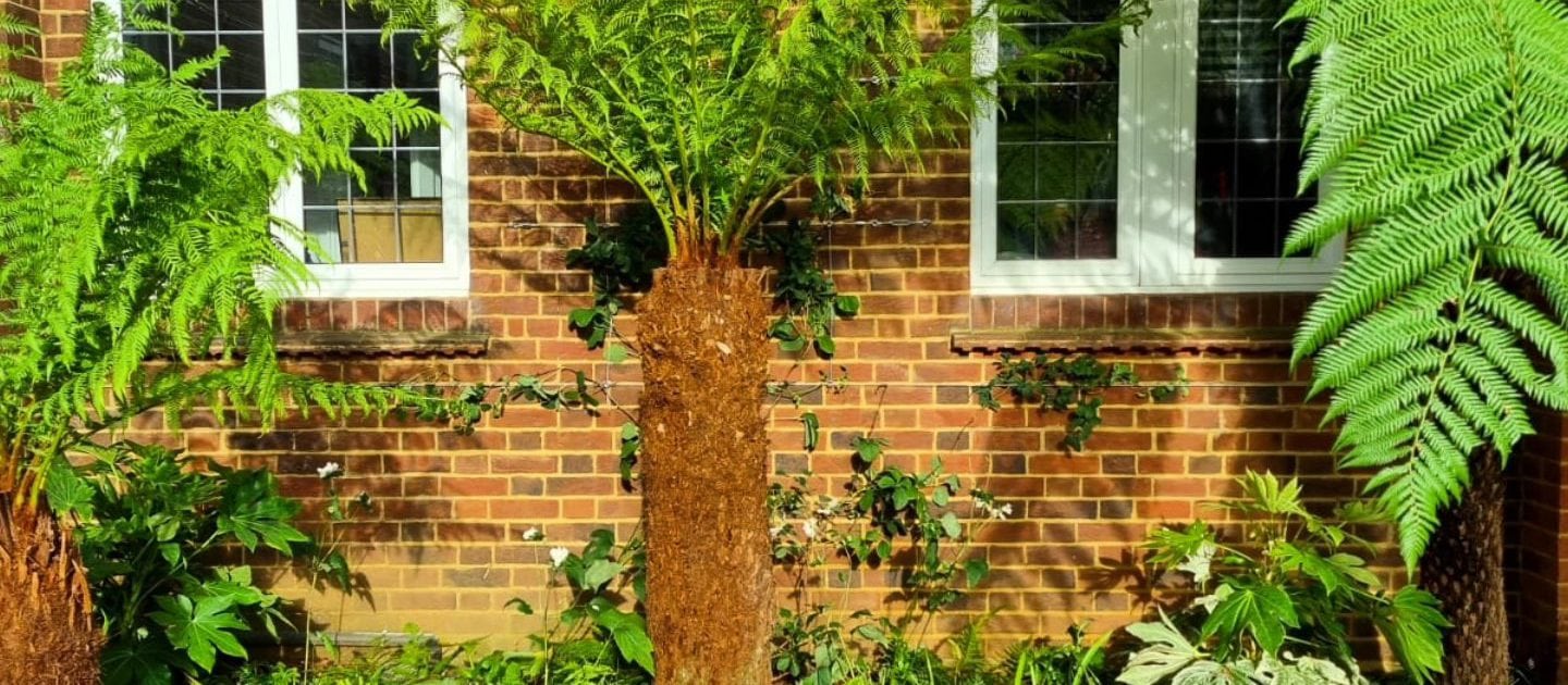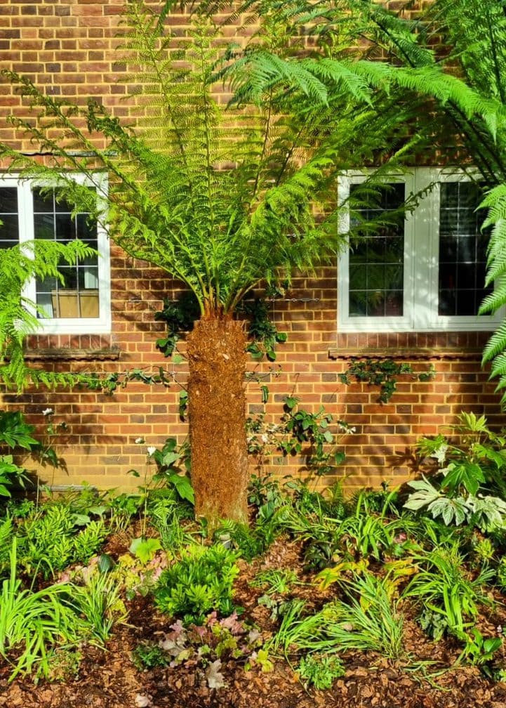– Dicksonia antarctica (tree ferns) to provide architectural height and a tropical feel.
