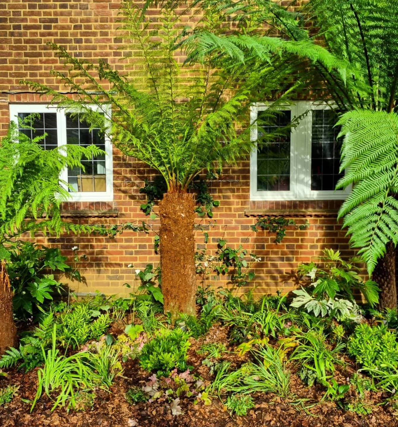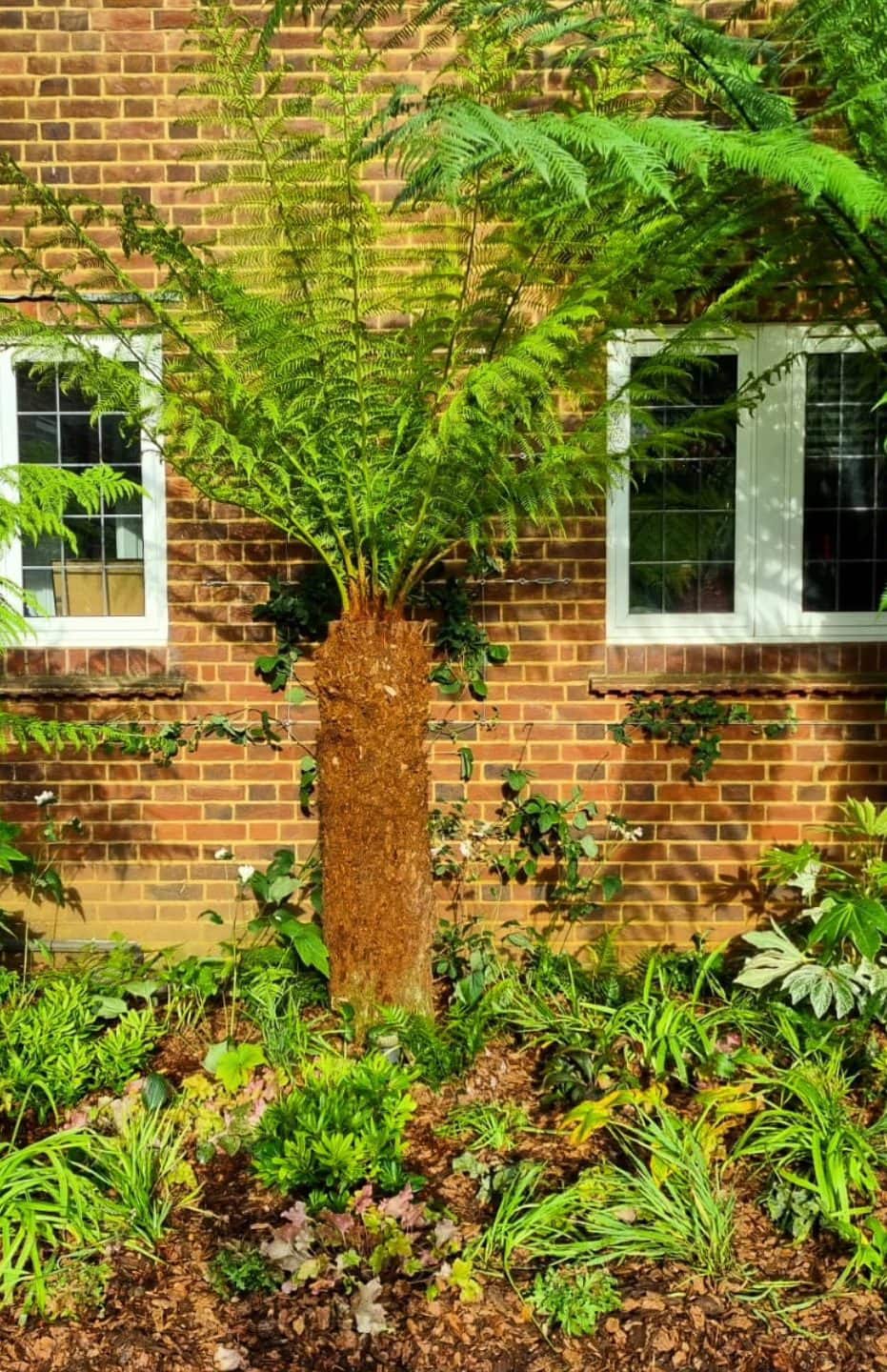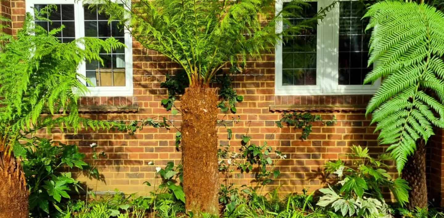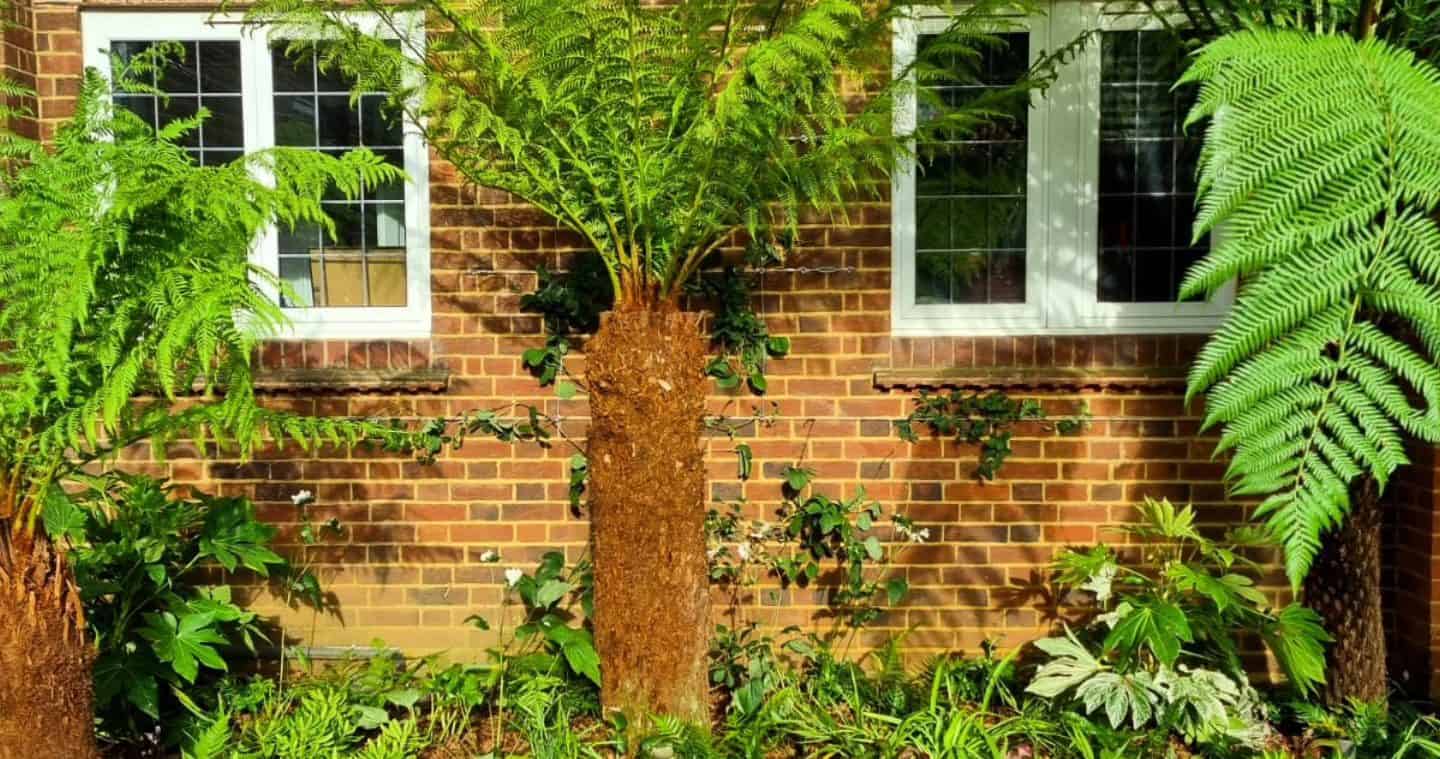 – Dicksonia antarctica (tree ferns) to provide architectural height and a tropical feel.