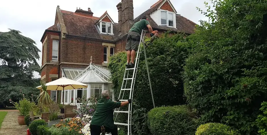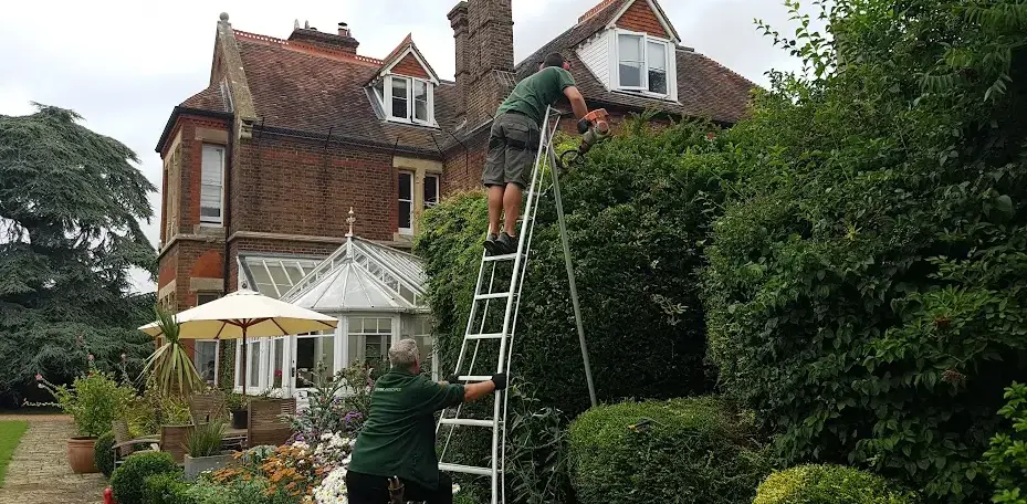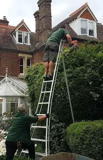 - Tall hedge trimming: Using ladders and long-reach equipment, we reduced the height and reshaped the hedges, carefully cutting back to allow more light into the garden while keeping the greenery healthy.
