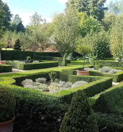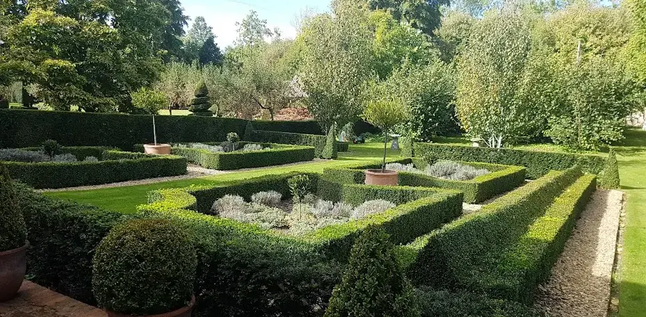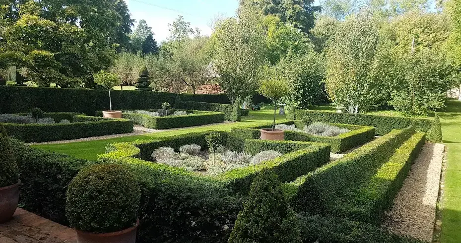The property’s garden was designed in a classic formal style, featuring geometric box hedges, gravel pathways, and shaped evergreens. While this layout creates a striking visual effect, it also requires expert maintenance to keep it looking its best.