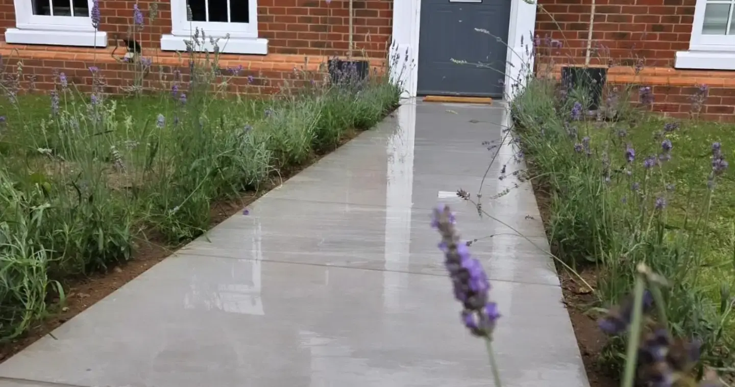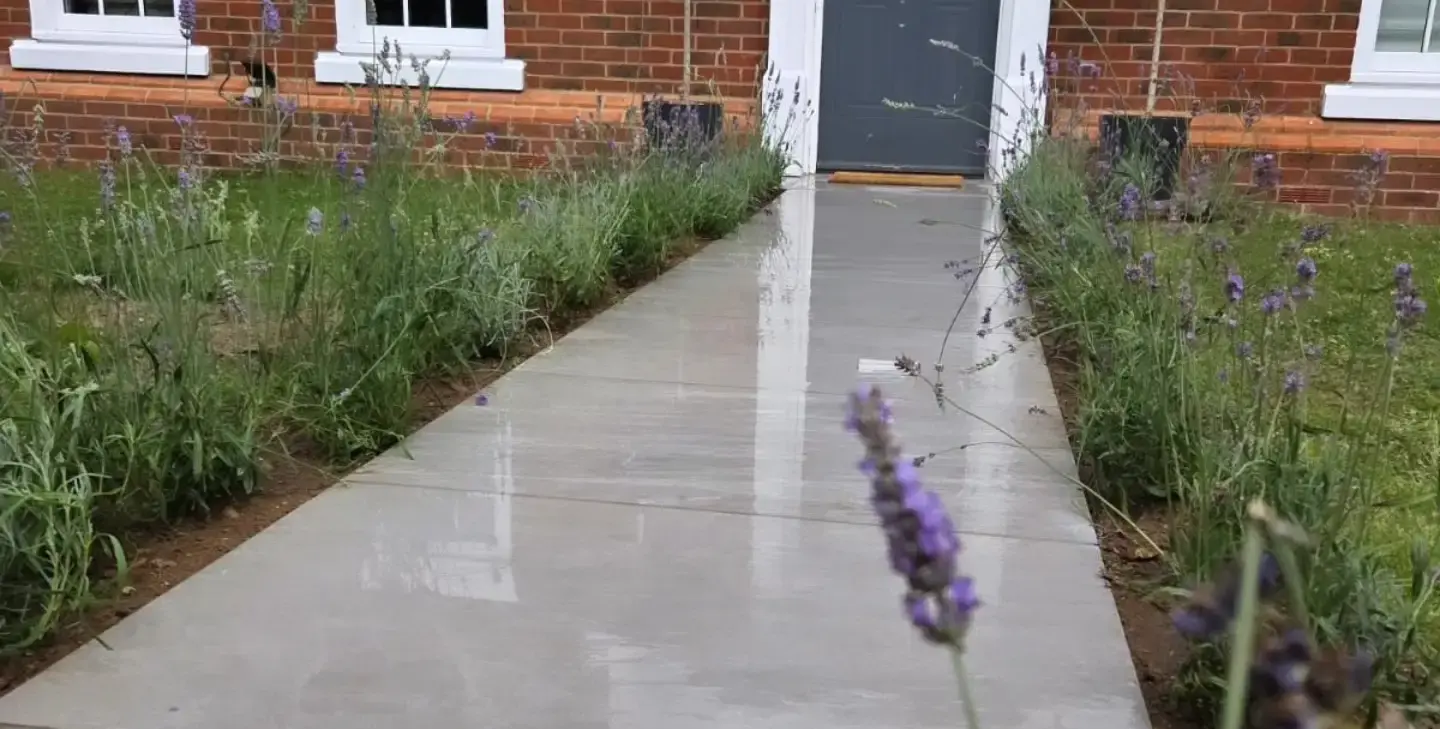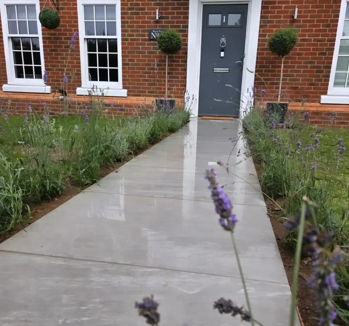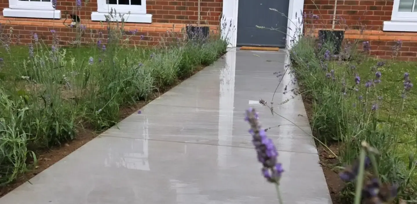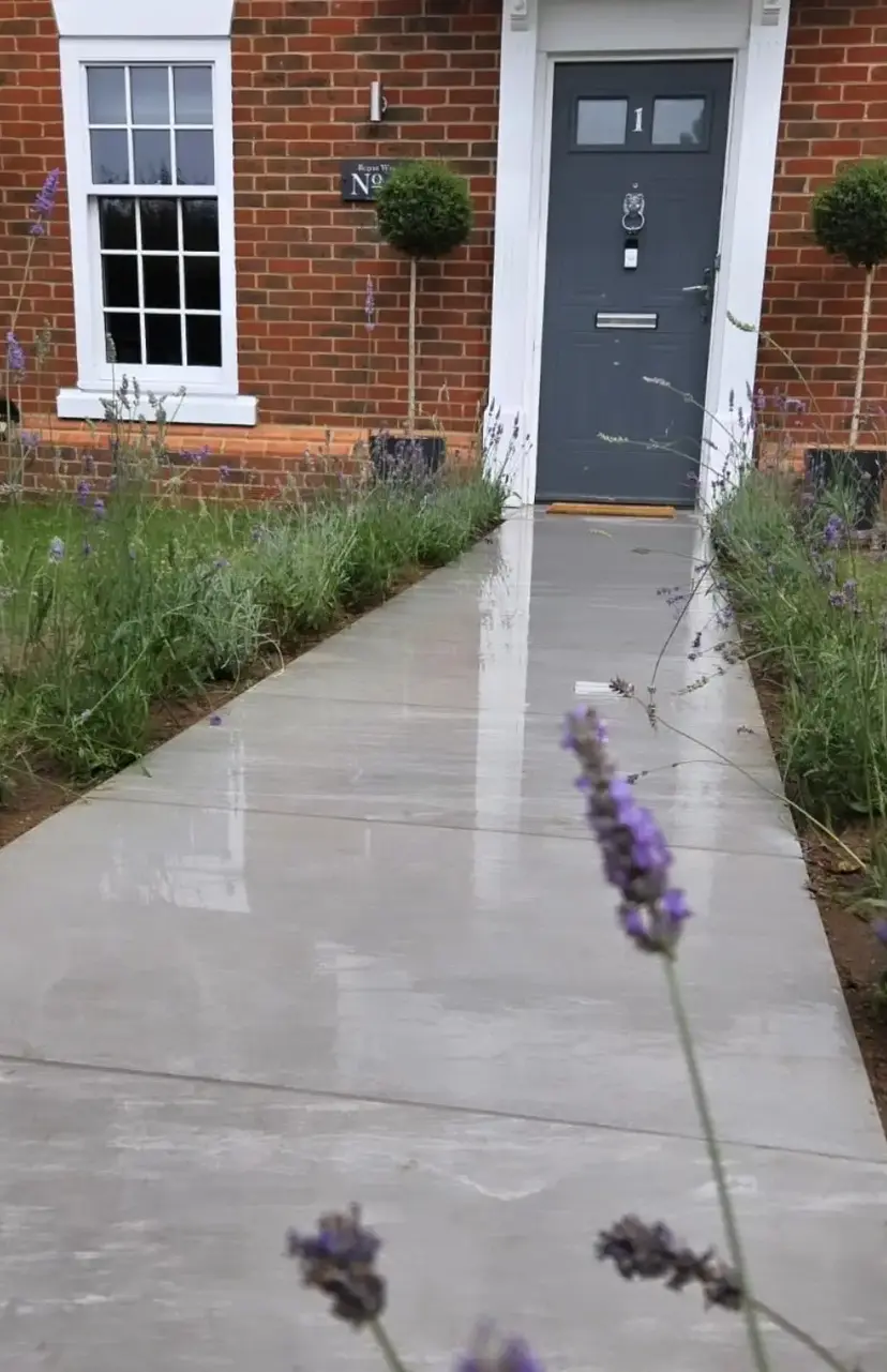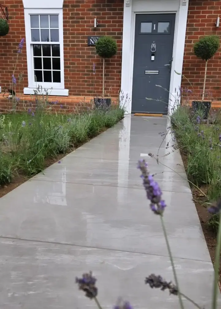 The finished project has completely elevated the front of the property. The new path is wide, level, and practical, offering a clear and elegant route from gate to door. The solid timber gate provides a secure yet stylish boundary, while the lavender planting brings movement and seasonal interest throughout the year.