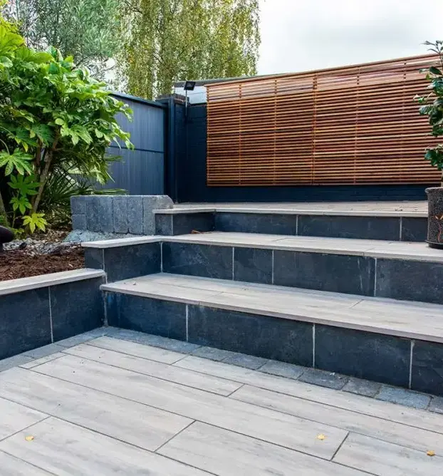 Porcelain is durable, stain-resistant, and slip-proof, making it perfect for low-maintenance outdoor spaces. It also retains its colour and finish over time without the need for sealing.
