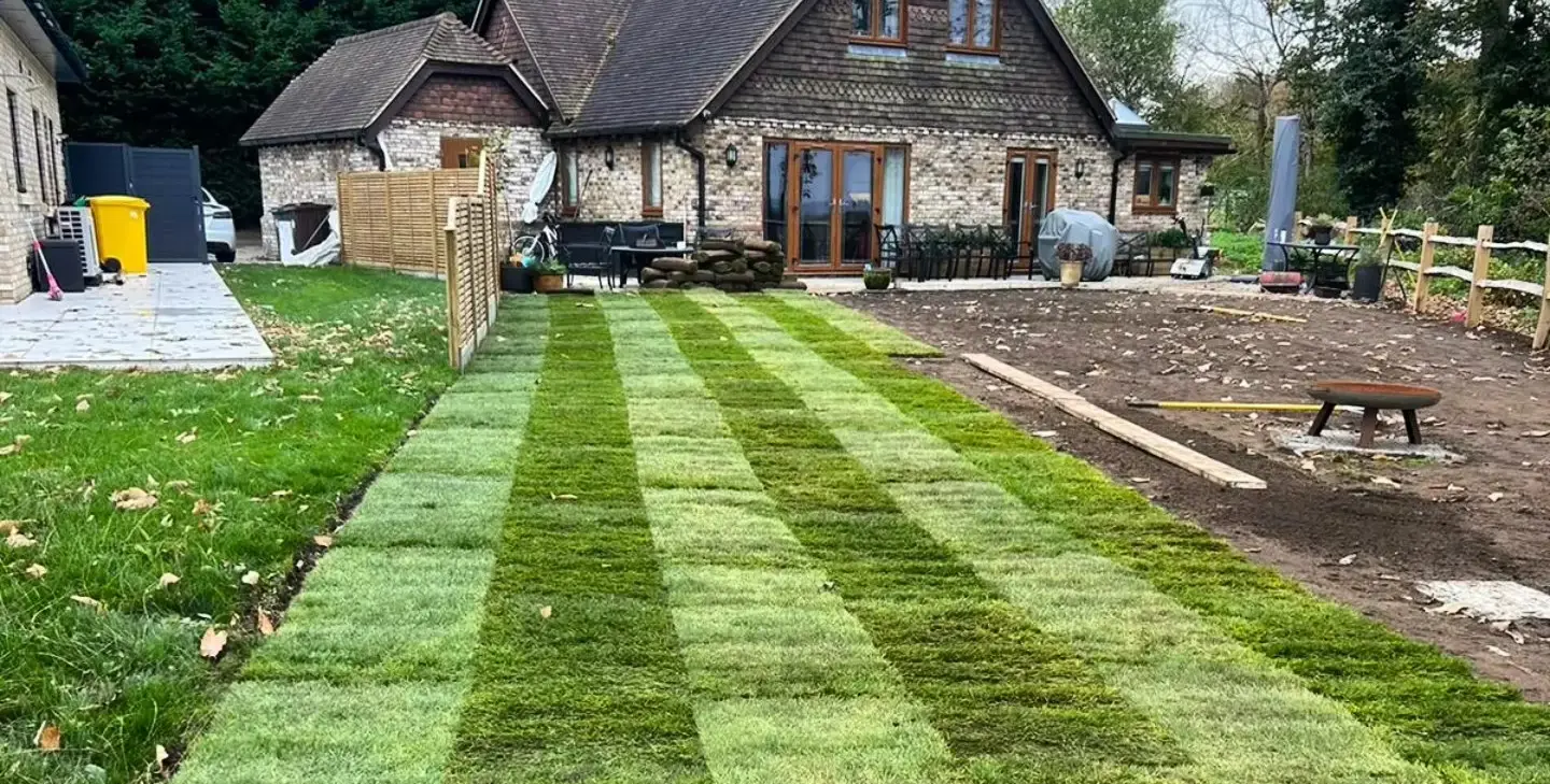 We completed a new lawn installation in Otham using Rolawn Medallion Turf – a premium product that truly stands out for its beauty and performance. Designed to combine elegance with practicality, this turf instantly transformed the garden into a lush, green space ready to enjoy.